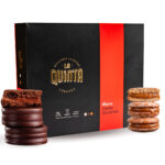 Los alfajores artesanales de dulce de leche y chocolate combinan tradición y variedad en una sola presentación. Cada caja incluye 6 alfajores clásicos de dulce de leche, 3 alfajores bañados en chocolate blanco y 3 alfajores con cobertura de chocolate negro, ofreciendo distintos sabores y texturas para disfrutar