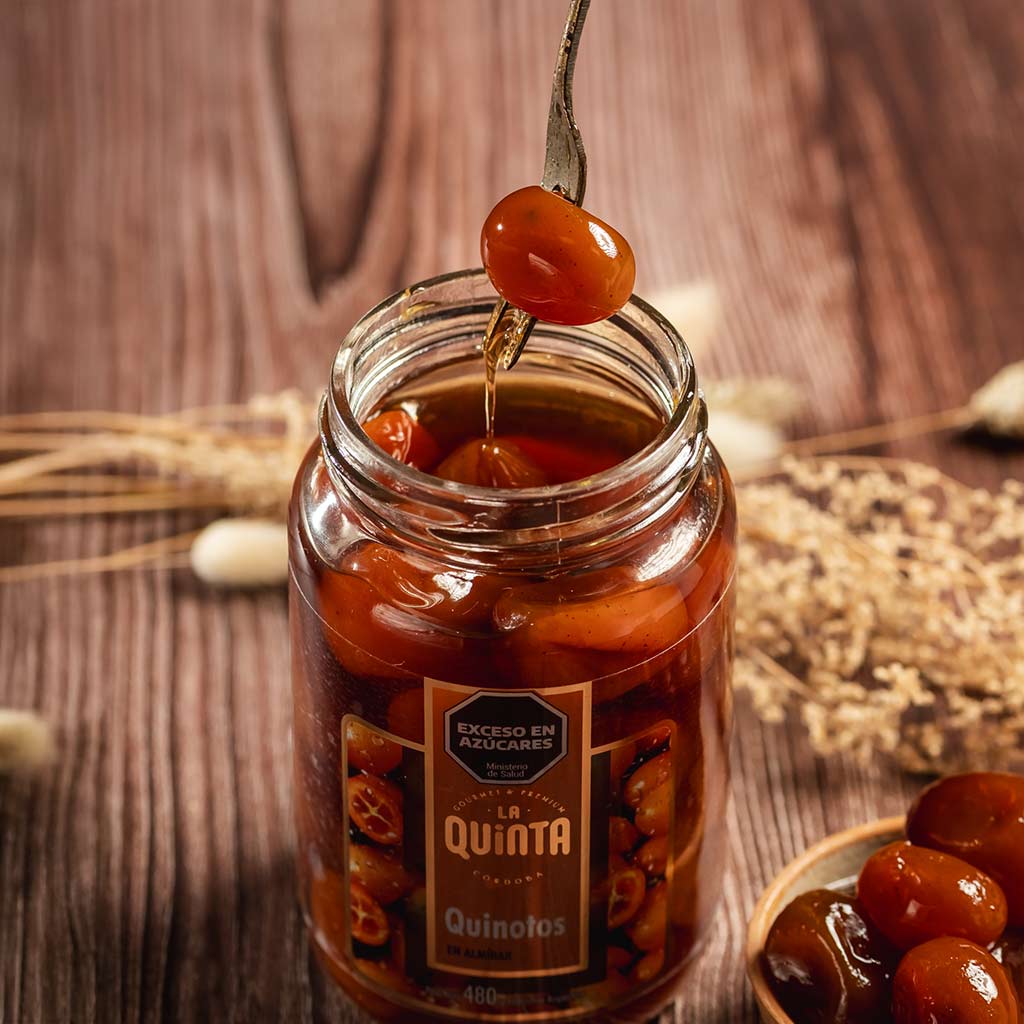 Fruta quinotos en almíbar gourmet, dulce artesanal de sabor cítrico y equilibrio perfecto entre dulzura y acidez. Ideales para postres, tablas dulces o acompañar quesos.